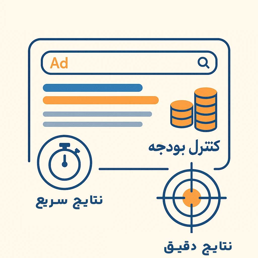 وقتی کسی در گوگل جستجو کند «طراحی سایت در تبریز»، و شما این عبارت را هدف گرفته باشید، تبلیغ شما در صدر نتایج و با برچسب کوچک Ad (تبلیغ) ظاهر میشود.